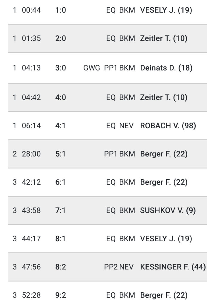 1. Drittel: Die Grizzlys starteten ungewohnt zurückhaltend, sodass das erste Tor erst nach 2:45 Minuten fiel. Doch dann platzte der Knoten: Innerhalb von nur 68 Sekunden folgten fünf weitere Treffer – ein Doppelschlagfestival durch Neugebauer und Ruck, das die Gastgeber förmlich überrollte. Mit einem klaren 10:0 ging es in die erste Pause.