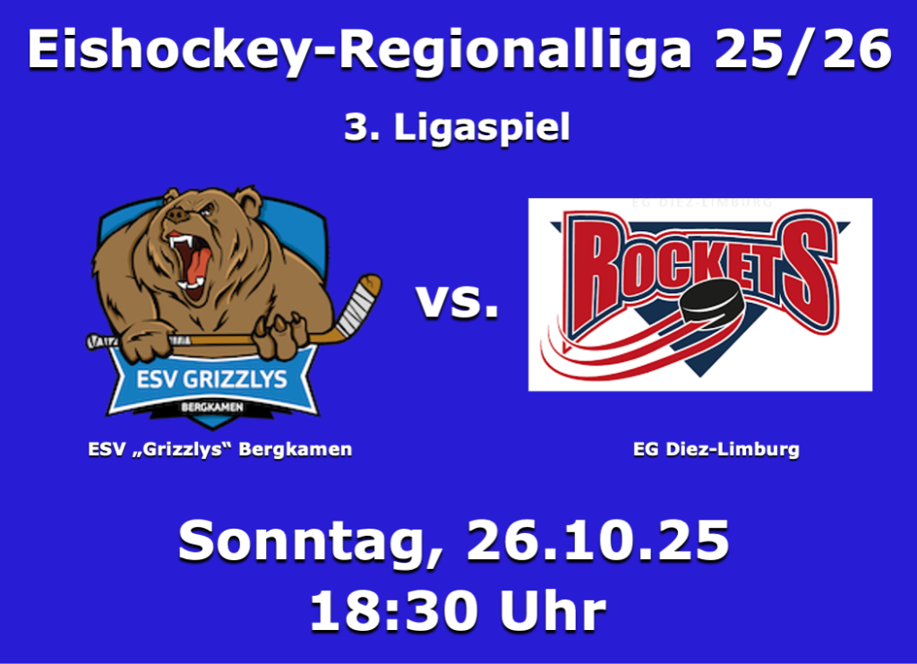 Nächstes Heimspiel der Grizzlys in Bergkamen ist am 26.10.25 um 18:30h gegen den „alten Neuling“ EG Diez-Limburg